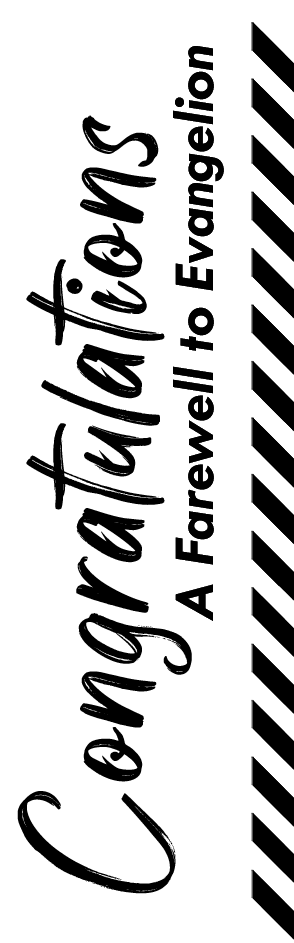Congratulations: A Farewell to Evangelion is an upcoming fanzine about the Evangelion franchise.To celebrate the recent end of this decades-long saga, we look back at all of it - from the original Neon Genesis Evangelion to the just-released 3.0+1.0: Thrice Upon a Time - with a zine that features its many memorable, endearing, heart-wrenching and amazing moments. Our contributors revisited and created pieces based on their own favorite memories, scenes, interactions or scenarios, be it from the very beginning to the very end.Our zine project is digital, packed with artwork, writing, several types of digital merchandise… and, most importantly, the spirit of the series, in a collection that truly bids ‘thank you’ and ‘sayonara’ to Evangelion.Now that the project has been finished, had its sales period and has been finally delivered to buyers, it is now CLOSED.